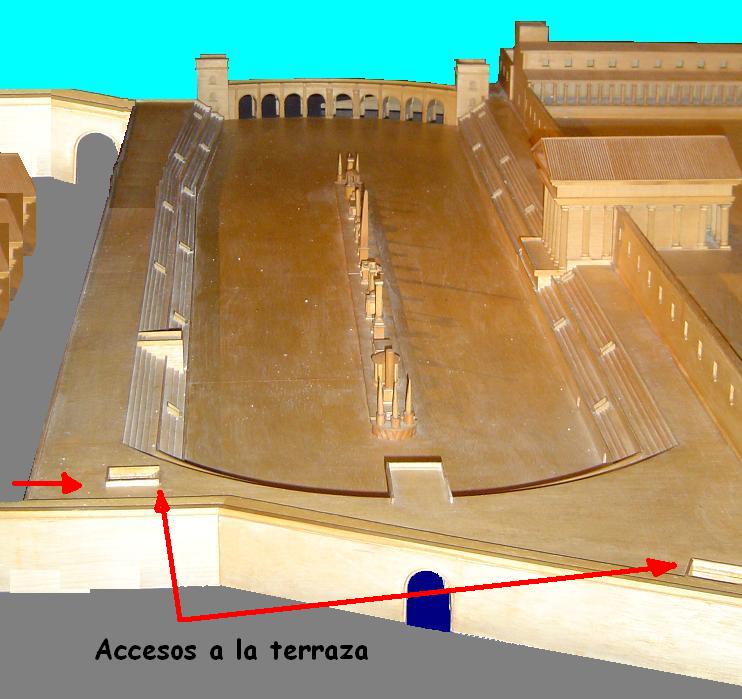 Yo había quedado con mi colega y amigo Tito en la puerta Triunfalis del Circo. Al mediodía de este día de Venus. Así que me deje arrastrar por una muchedumbre de gente que entraba y salía sin cesar por la regia puerta Norte de Tarraco. Y nada mas entrar observe la grandeza y el bello equilibrio arquitectónico del Circo Máximo Tarraconense. Al momento ví a mi amigo Tito que vino rápido a saludarme. Después de intercambiar abrazos y la alegría de volvernos a ver, cruzamos el Circo para subir a una terraza que nos llevaría a la parte alta de la ciudad, el antiguo Opidium. La idea es tomarnos un refrigerio y charlar un poco en el Foro Provincial de la ciudad. Desde este emplazamiento se observa en toda su magnificencia el Circo Máximo. Y toda la ciudad. |