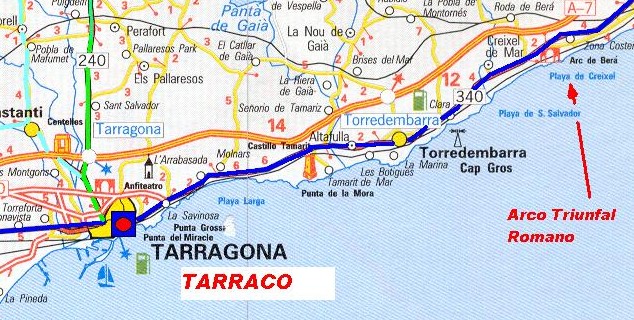 Por fin, mientras nos recreamos con las continuas vistas del mar, tomamos una suave curva hacia la derecha y divisamos con todo su esplendor las murallas del "Opidium" de Tarraco. Es la parte más alta de la ciudad, y donde tuvo lugar el origen como campamento militar la actual capital de la Tarraconense.