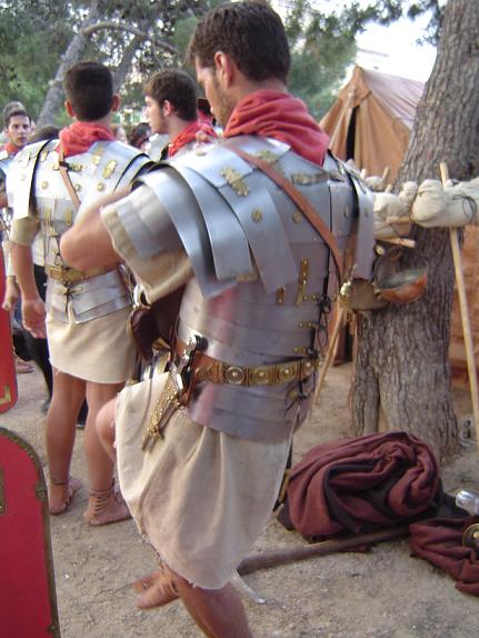 Al llegar a puerto vimos como desembarcaban y preparaban sus atuendos unos legionarios que se dirigían a lo mas profundo de la Provincia para mantener el orden y la paz en las antiguas tierras celtiberas. Tarraco desde su misma fundación siempre ha sido lugar de desembarco y distribución de tropas por casi toda la Hispania. Por lo tanto era habitual ver esta imagen. Les saludamos y deseamos que los Dioses les protejan y buscamos el almacén que guardaba mi genero.