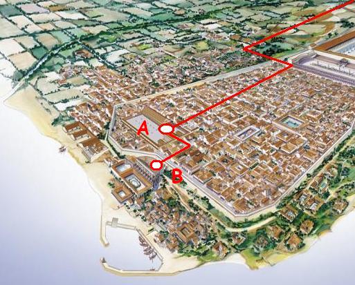 Esta vez entramos por la puerta sur para dirigirnos al Foro Local (A) y ver la posibilidad de alquilar un cubiculo para vender mi mercancía. Por fin y tras negociar varias horas alquilé una pequeña habitación junto al Foro Local (A) para realizar mis ventas. |