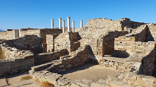 La Casa de los Naxios, es el monumento más antiguo de Delos: el óikos o casa de los