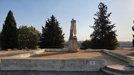 TRAIANEUM Templo dedicado a Trajano, rodeado de una plaza porticada con exedras. El esquema arquitectónico tiene raíces helenísticas. Se cree que algunos hallazgos escultóricos y la descripción que hace el fraile Zeballos de la basílica porticada corresponde con este templo. En las excavaciones de los 80 llevadas a cabo por P. León apareció este conjunto arqueológico, el templo a Trajano divinizado. Los restos corresponde a la base de un templo de 29x47m precedido por un ara, rodeado por una plaza porticada de 86x56m adornada con estatuas. El conjunto ha sudo muy expoliado.El Traianeum se halla en el punto más elevado de la ciudad y su sistema de proporciones es el llamado hecatostylon, patrón de cien columnatas: treinta en los lados largos y veinte en los lados cortos. Coincide con el proyecto de la biblioteca de Adriano en Atenas. A la plaza se accedía a través de dos escaleras y del templo solo se conserva la losa de cimentación. Han aparecido numerosos elementos decorativos y epigráficos. Es el único templo octástilo de toda Hispania.