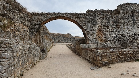 El anfiteatro de Conímbriga se conserva debajo de las casas de Condeixa-a-Velha y bajo los escombros de su demolición. Con unas medidas de unos 90 por 60m y una capacidad para más de 4000 espectadores. Construido al final del período julio-claudio, aprovechando un cañón natural que rodeaba la ciudad desde el norte. Destruido y usado como cantera para construir la muralla. Foto: Museo.
