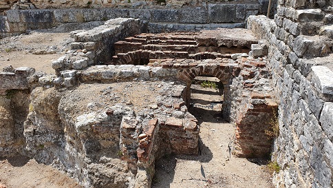 de L y decorada con losas de caliza blanca. Excavadas en 1940-44.