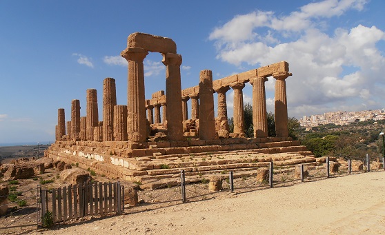 de estilo dórico. El Templo de Juno Lacinia, domina la cima del