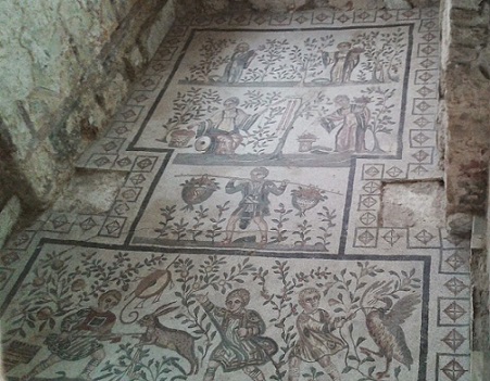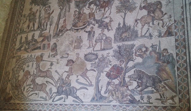 niños, caza y mitología. Los mosaicos fueron construidos por artistas