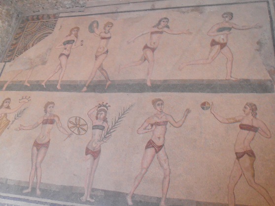 monocromos. Uno de los mayores mosaicos de Piazza Armerina es de la