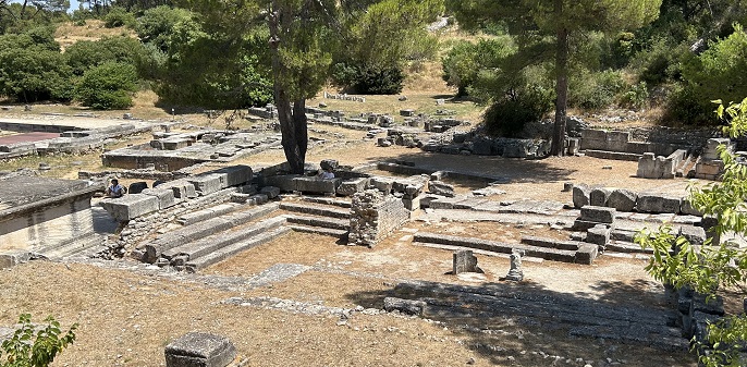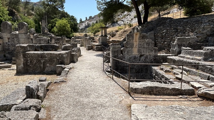 El Pórtico dórico, situado en la entrada del santuario, probablemente servía para las abluciones purificadoras de los fieles que acudían al manantial.