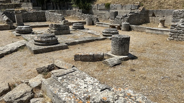 La Casa de Atis, edificada en el siglo II a.e.c., fue ocupada durante cerca de cinco siglos. Esta casa mantuvo sus paredes exteriores durante varios siglos, pero su organización interior fue modificada en diversas ocasiones. Por ejemplo, en el periodo romano se añadió una cocina y un pozo con brocal. Estas reformas y la calidad de los umbrales son testimonio de la riqueza de esta casa. Al parecer, en la época romana fue el lugar de residencia de los sacerdotes del culto de Atis, joven pastor de Frigia castrado por Cibeles. En el hotel de Sade se conserva un bajorrelieve de mármol descubierto aquí.