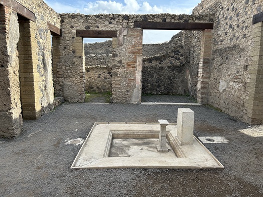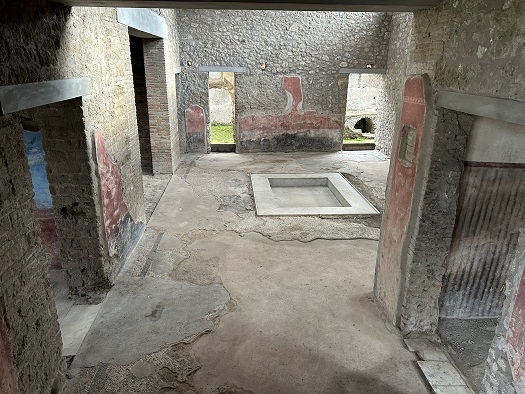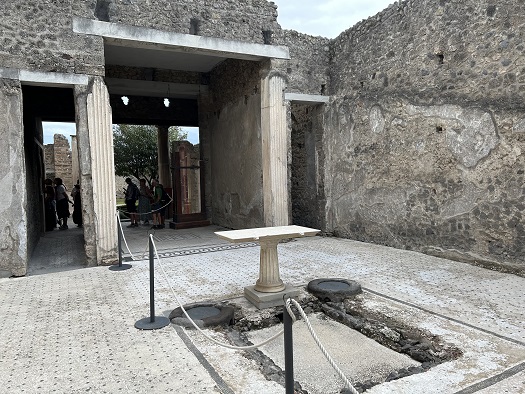 atrio tiene en el centro el impluvium; aún conserva parte de