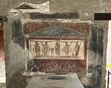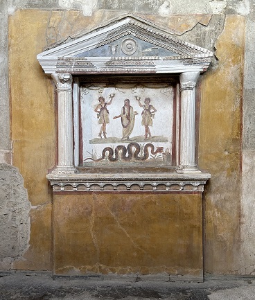 altar envuelto en una serpiente. Junto al lararium, sobre el