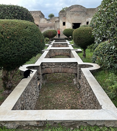 del ninfeo cerca de la pared del fondo del pequeño jardín.