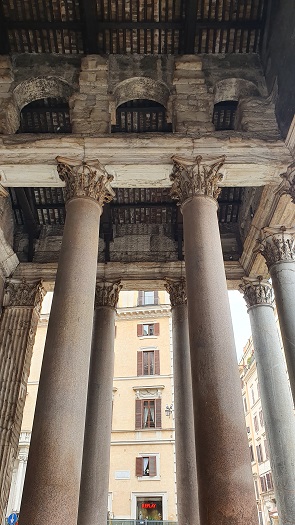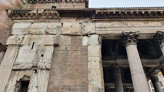 mármol y restos de policromía sobre los relieves del pórtico. En abril de 2020 bajo el Panteón gracias a un socavón fortuito en la plaza de la Rotonda, nos permite redescubrir el pavimento original de la época del emperador Adriano.