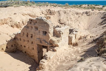 En el siglo III a.e.c es conquistado por los romanos que ya controlaban el Valle del Guadalquivir. Restos romanos en la provincia de Cádiz: -En Jimena de la Frontera, la antigua Oba, debajo del castillo de época musulmana, destacan los restos de época romana. Se han localizado las puertas principales, torres, infraestructuras hidráulicas y un templo. En diciembre de 2015. - Ocuri se halla en la cima del Salto de la Mora, en las inmediaciones de la actual Ubrique. Conjunto arqueológico en el que se conservan restos de arquitectura funeraria, vestigios de arquitectura doméstica, murallas y restos de infraestructuras para abastecimiento. - A 5 km de Prado del Rey se localiza Iptuci, se conservan los restos de sus murallas y torreones, así como con algunos vestigios de pavimentos y elementos arquitectónicos de viviendas de la ciudad romana datada en el siglo II. Colonia Ituci Virtus Julia. - En el término de Arcos de la Frontera se halla el yacimiento de Sierra de Aznar, antigua ciudad ibero-romana. Pueden apreciarse parte de sus murallas, restos de casas, la necrópolis, y restos del sistema hidráulico de abastecimiento, aljibes y áreas de decantación y depuración. - A pocos kilómetros de Espera se hallan las ruinas de Carissa Aurelia. Poblada desde el Neolítico, alcanzó su mayor desarrollo y esplendor durante la época romana siglos II-IV. A este período corresponden las dos necrópolis excavadas en la roca, el núcleo amurallado, el mausoleo y los restos del sistema hidráulico de abastecimiento. - El yacimiento arqueológico fenicio con instalaciones para producir vino, del siglo III a.e.c. en el Puerto de Santa María. - Carteia. - En Mesas de Asta se localiza Asta Regia. Poblada desde el último tramo del Neolítico hasta el Siglo XI. Fue abandonada y la población se desplazó a donde se ubica actualmente Jerez de la Frontera. - En Barbate, la antigua Baesippo, en marzo de 2018, el temporal Emma, en Caños de Meca descubre restos de unas piletas de salazón romanas. Se trata de un recinto de más de 100 metros cuadrados, ubicado en la misma zona en la que se encuentran las conocidas 'piscinae' o balsas romanas de Trafalgar. La construcción descubierta aparece bien conservada, ya que la arena que hasta ahora la ha cubierto ha preservado buena parte de la estructura. Las excavaciones de marzo de 2021, documentan los restos de una zona residencial romana en la que vivían los dueños del primer vivero romano de toda la Bética y que se ubica en el tómbolo de Trafalgar. También se ha documentado una industria de salazones en la misma zona con piletas en buen estado de conservación y otra ubicada a unos 500 metros en la playa, así como un yacimiento prehistórico. En mayo de 2021, en las dunas que rodean el Cabo de Trafalgar, hallan en la costa unas termas romanas excepcionalmente conservadas. Foto: Agencia EFE