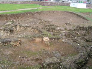 África. El palacio se construyó a las afueras de la ciudad en el ángulo noroccidental en un lugar ocupado previamente por una villa suburbana y un espacio periférico de necrópolis.