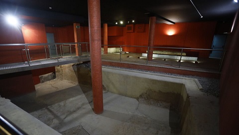 un ojo de buey de piedra violácea. Esta datada en el siglo I.