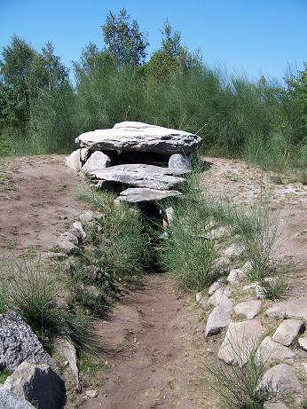 funerario de gran riqueza arqueológica, con más de 5.000 años de antigüedad. La mámoa está semienterrada, lo que nos permite ver la entrada y su interior. A su