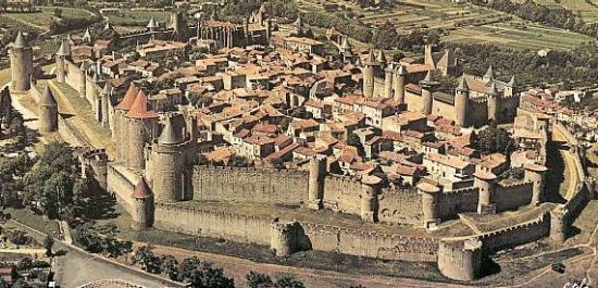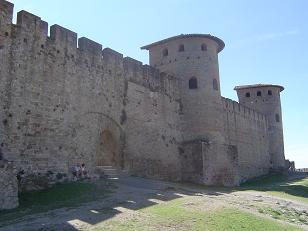 En el 333, en el itinerario de un peregrinaje de Burdeos a Jerusalén, se menciona el Castellum de Carcasona, en una lista de etapas que comprendía albergues, postas, burgos, ...etc. Las primeras murallas son de origen romano. Las torres y las murallas se construyeron evitando las líneas rectas, en un intento de reducir la efectividad de un ataque con arietes. La situación estratégica en que se ubica la ciudad la convirtió en un importante objetivo. Como consecuencia las fortificaciones de la plaza sufrieron continuas ampliaciones y mejoras para adaptarse a la evolución de las técnicas de guerra. En el año 350 la ciudad fue tomada por los francos, aunque los romanos la recuperaron enseguida y reforzaron sus defensas. Sin embargo no fue suficiente para evitar que la ciudad cayera en manos de los visigodos en 436, durante el reinado de Teodorico.
