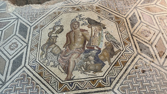 El mosaico más importante representa a Orfeo tocando la lira, del que la